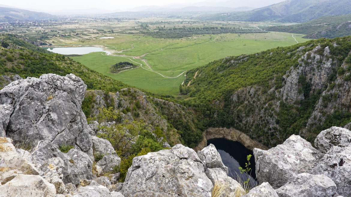 Od Biokova prema zaleđu spušta se Imotska krajina. Prostor je tipičan teren dinaridskog krša bogat podzemnom vodom i karakterističnim krškim poljima, izvorima, rijekama, kanjonima, uzvisinama i jezerima. Veliku ulogu ima Vrljika, rijeka ponornica koju još nazivaju i “hraniteljicom” jer omogućava poljoprivrednu proizvodnju u cijelom kraju. Od krških izvora značajni su Krčevac i Opačac. Veliku vrijednost imaju i krška jezera čija razina vode je ovisna o hidrološkoj situaciju i godišnjim dobima. Najvažnija su Crveno i Modro jezero zaštićeni u kategoriji geomorfološkog spomenika prirode, zatim Prološko blato zaštićeno kao značajni krajobraz te nekoliko manjih jezera: Ričice, Galipovac, Knezovića i Mamića jezero.